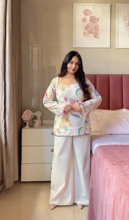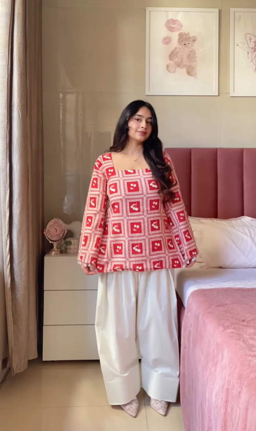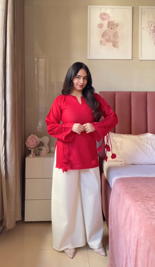 Model Info: Wearing size Medium with regular length bottoms; height 5’1” (wearing 2-inch heels)