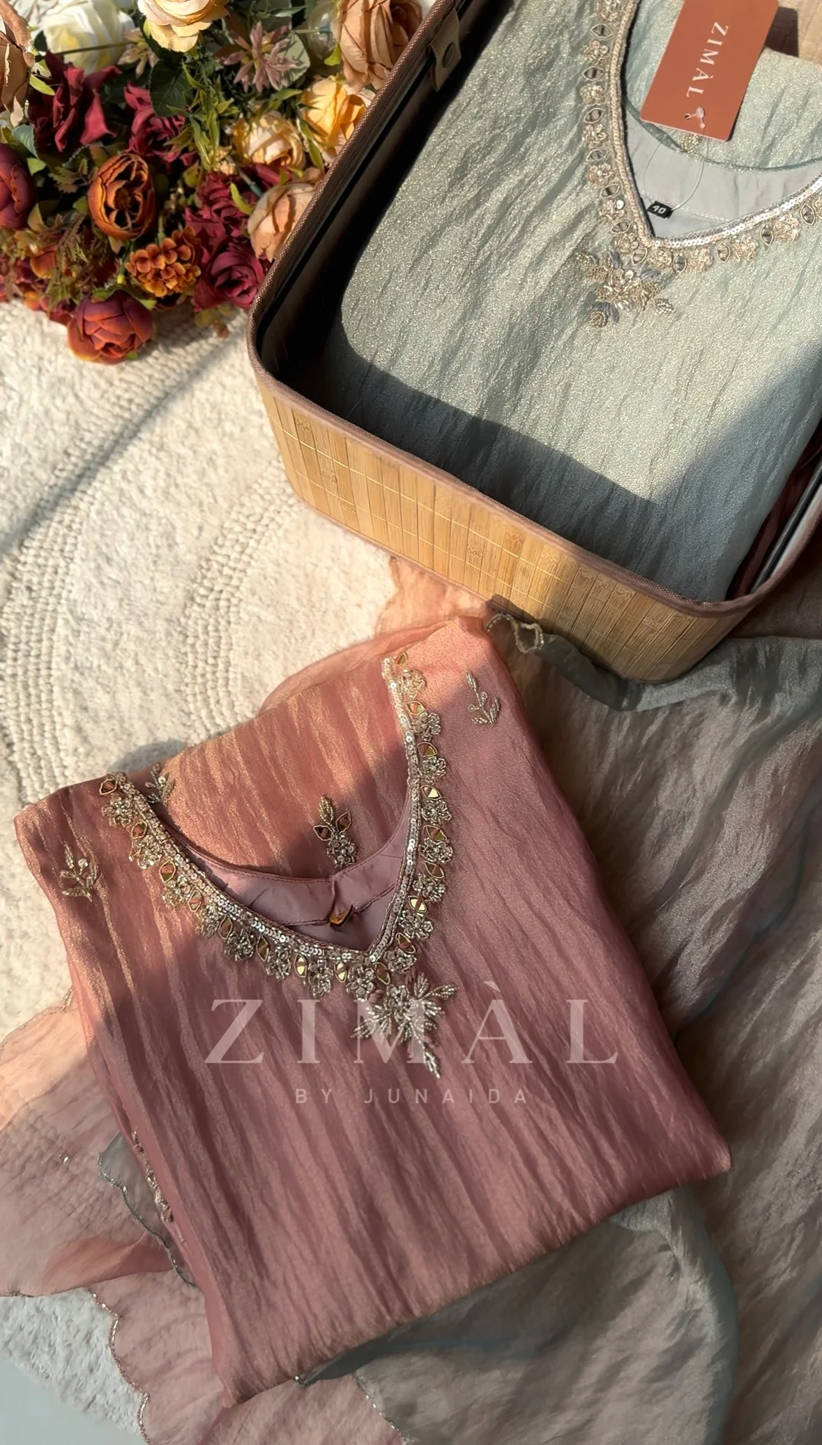 Be the first to review “Crushed tissue silk hand work straight cut top with crushed tissue palazzo bottom”