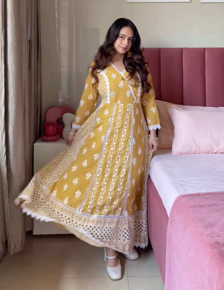 Crafted from premium pure cotton, the kurta and sharara set ensures maximum comfort, especially suitable for warm, tropical, or humid weather conditions. The soft and breathable texture of cotton feels gentle on the skin, making it ideal for day-long wear. Pure cotton also offers superior moisture absorption, reducing discomfort and keeping you cool and refreshed. Unlike synthetic fabrics, it allows natural airflow, making the outfit perfect for festivals, haldi functions, temple visits, and summer celebrations. The fabric is lightweight yet structured enough to maintain the outfit’s graceful silhouette.