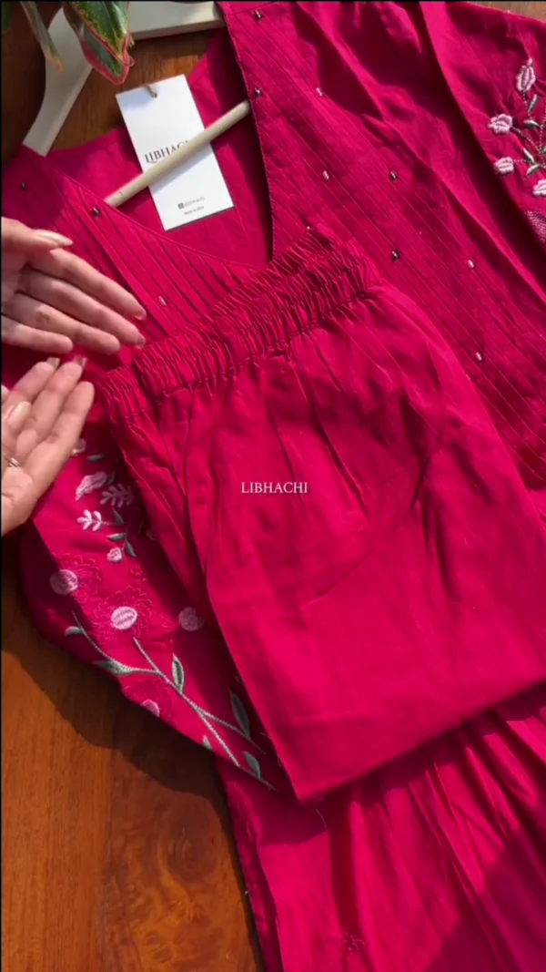 Ehari Mal Cotton A Line Kurta Pant Set Pink