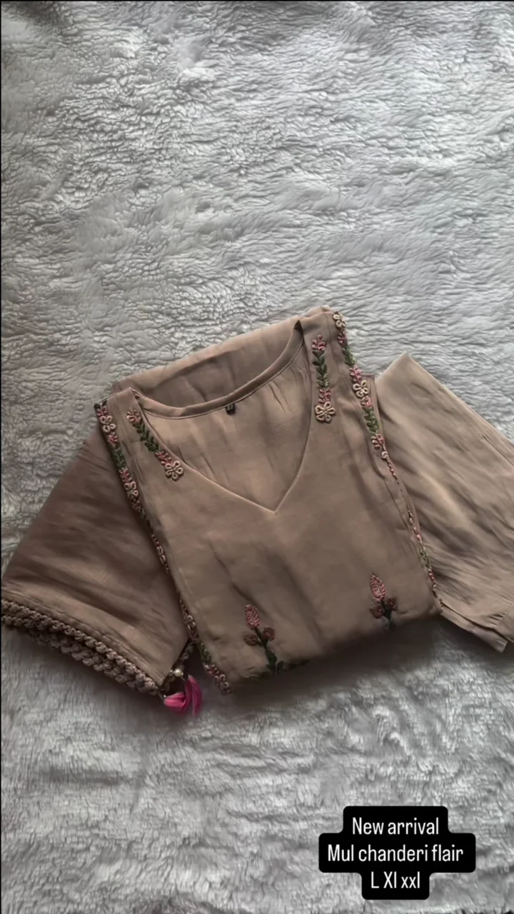 ✅ Pure Mul Cotton Kurti In Ombré Shades With Exclusive French embroidery On The Kurti