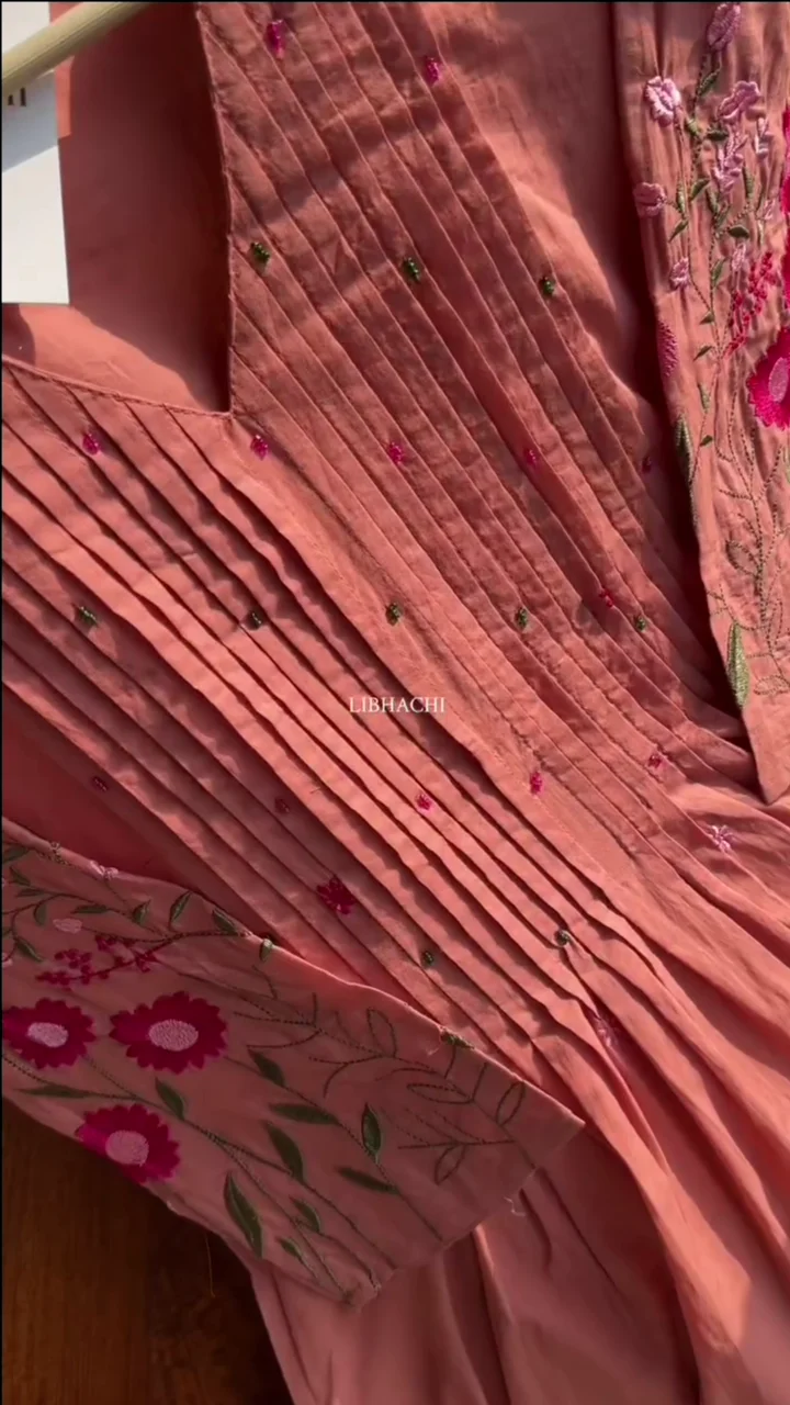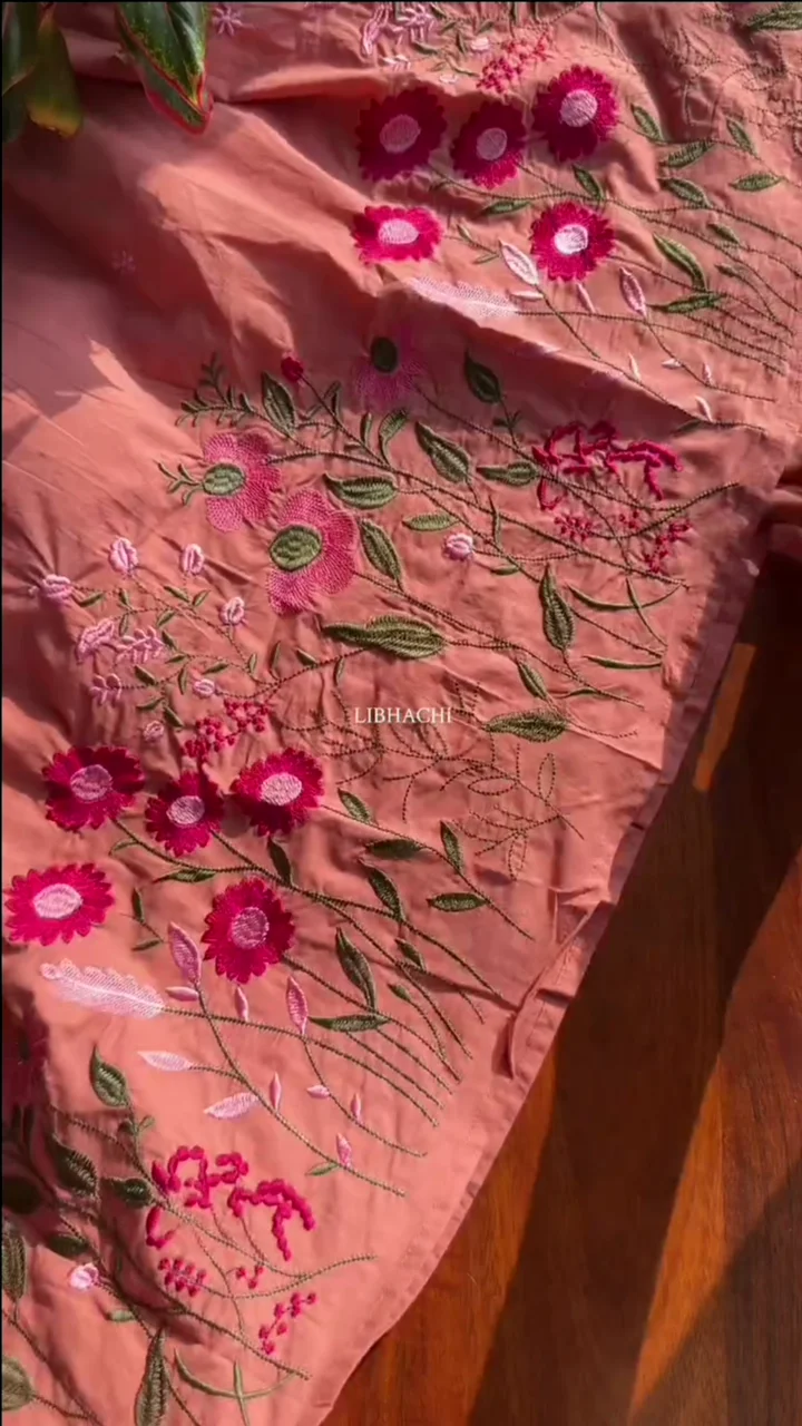 + Free Shipping Pure Mul Cotton Kurti In Ombré Shades With Exclusive French embroidery On The Kurti