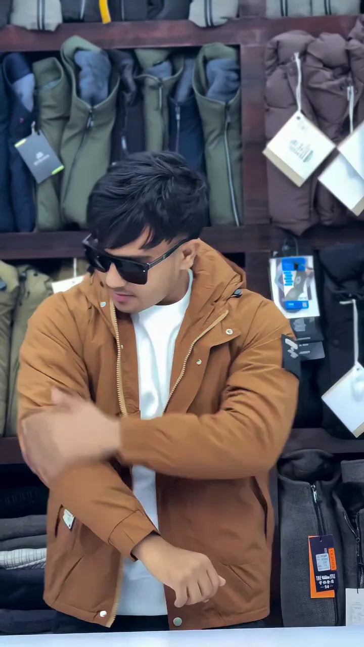 Men’s Casual Brown Hooded Jacket