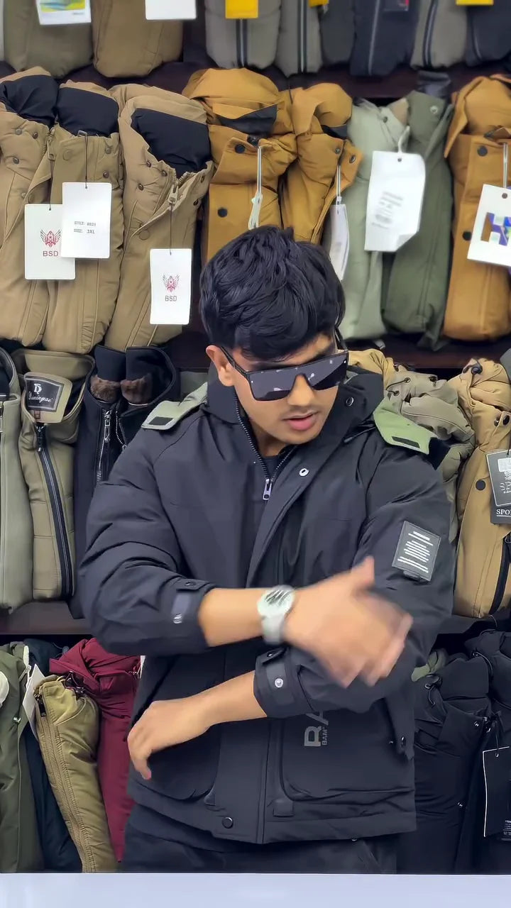 Since the jacket is busy, keep the rest of your outfit neutral. Pair a black typography puffer with plain black joggers and chunky white sneakers. This ensures the jacket “speaks” for itself without clashing with other patterns.
